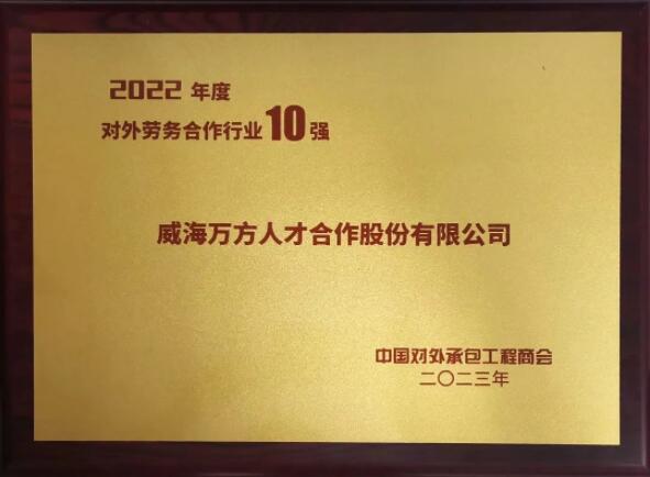 熱烈祝賀威海萬方人才公司榮獲“2022年對外勞務(wù)合作行業(yè)十強(qiáng)企業(yè)”和“2022年中日人才合作十強(qiáng)企業(yè)”。