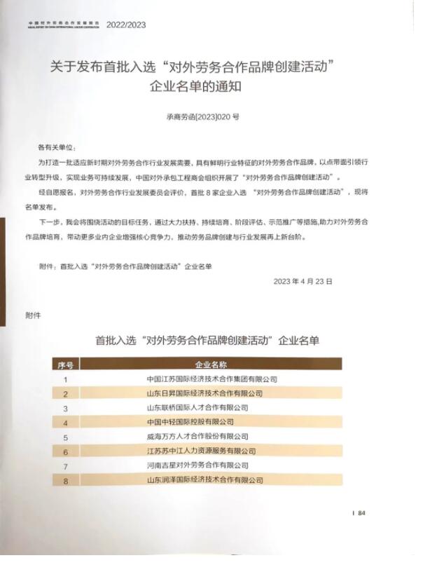 近日,在由中國對外承包工程商會組織的“2023對外勞務(wù)合作行業(yè)發(fā)展大會暨中日人才協(xié)力機(jī)構(gòu)第十二屆成員大會”上,我公司榮獲“2022年對外勞務(wù)合作行業(yè)十強(qiáng)企業(yè)”和“2022年中日人才合作十強(qiáng)企業(yè)”,我公司也成為了首批入選“對外勞務(wù)合作品牌創(chuàng)建活動”的企業(yè),在第十二屆中日人才協(xié)力機(jī)構(gòu)理事會議上,我公司當(dāng)選為副會長單位。
